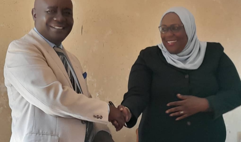 Chairperson National Women's Council and CAO Kayunga sharing a moment at the District Headquarters.