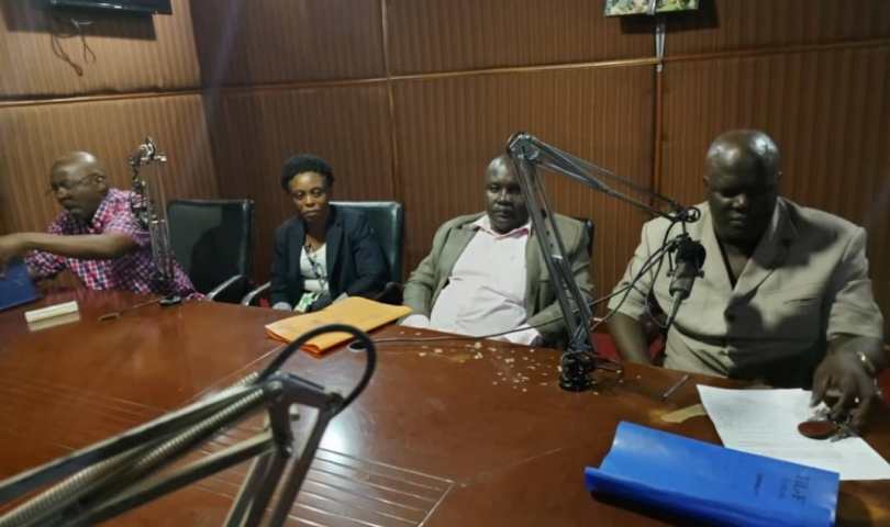 DEO and team together with sec. for education and RDC at Radio Sauti mobilizing parents to send their children back to schools next week Monday for term 11 education program.