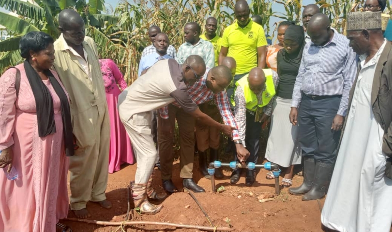 A Team of District leaders and Technical staffs commissioned the UGIFT micro scale irrigation programme at Musiitwa Seed School in Nazigo Subcounty. The RDC presided over the commissioning and was impressed by the project. He urged Head teachers and LC3 Chairperson to use the scheme as a demonstration garden to sensitise community and adopt irrigation. This approach will help people out of poverty since Agriculture is the backbone of the country.